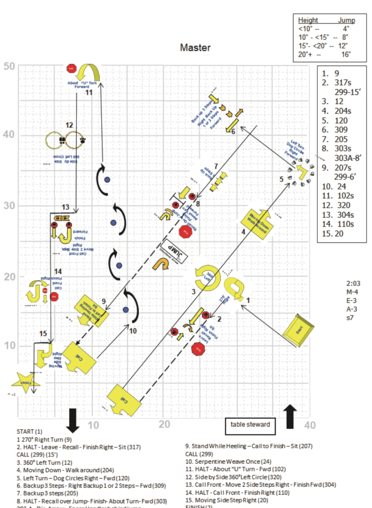 Following is an actual AKC Master course to try. It includes two of the above signs, #s 207 & 317.