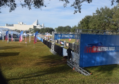 Introduced at this event was the Fast Cat competition. It was run outside, beautifully set up, and convenient for handlers to crate out of their cars. The Florida weather was moderate to mild, so a good chance to showcase this exciting skill. The winner to be crowned “Fastest Dog” in the USA.