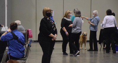 December 9 & 10 were the Pre-trials for the big AKC events, hosted by Orlando Dog Training Club at the Convention Center. Pre-trial entries were smaller than usual for Obedience, but huge for Rally. Considering the Rally National Championship was Friday, December 11, it was expected that handlers would enter Rally at ODTC to get their dogs into the competition rings. The entry total for Thursday was 159 – just one short of the limit for any judge. Louann Currey did a great job keeping up, although I’m sure there were a number of absentees. It was suggested that exhibitors bring their own food as the Convention Center vendors would be very limited and most did pack a lunch. Handlers removing their masks to catch a drink or a bite were promptly reminded to mask-up as soon as possible. Safety was the name of the game.