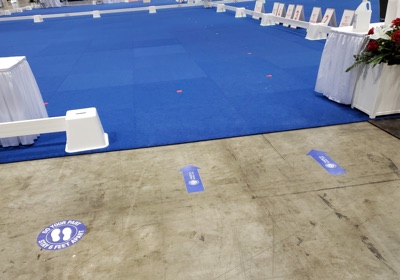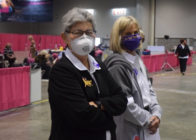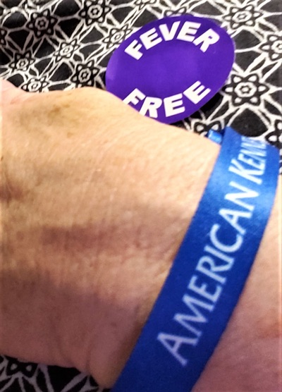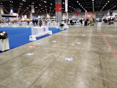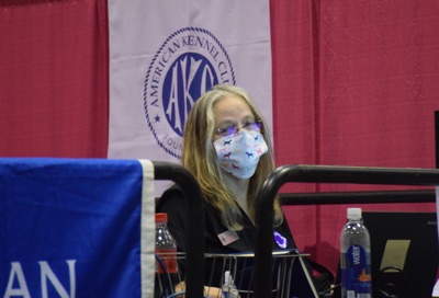 I was privileged to judge the RNC this year, replacing a judge who was unable to make it due to quarantine restrictions. There was a substantial number of absentees making it easy to stay on schedule, but sad that so many handlers couldn’t get to the competition. Entry numbers were still down for most events, which is understandable. I was impressed with the precautions in general, though. Conformation grooming spaces were defined by drapery. Stickers adorned the floor and rings around the breed rings, reminding everyone to stay 6 feet apart. Everyone had to sign a waiver and self-declaration form. We were given an AKC bracelet to wear every day. Each day temperatures were taken and a different color sticker reading “Fever Free” was handed out. Regular announcements came over the sound system reminding everyone to show, shop and go. No socializing, no one standing ringside not handling a dog, no watching except live-streaming on AKC TV.