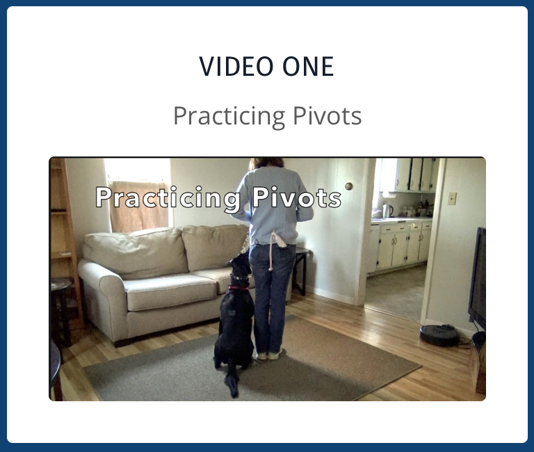 Ready to get started? No matter your dog’s skill level, there’s no reason you can’t start working on your glove pivots. “M” and I have a great time practicing pivots in the house.