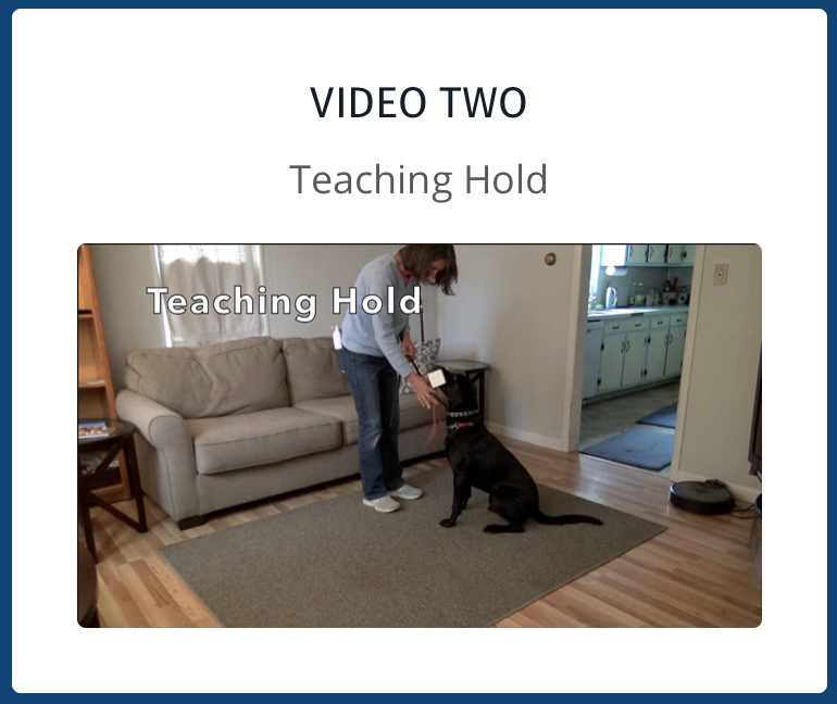 When I teach the retrieve, “Fetch” means “Pick that up and hand it to me.” I only teach my dogs the command “Hold” if they are mouthing the object. Using opposition reflex, you can teach your dog that “Hold” means “Hold the object without mouthing.”