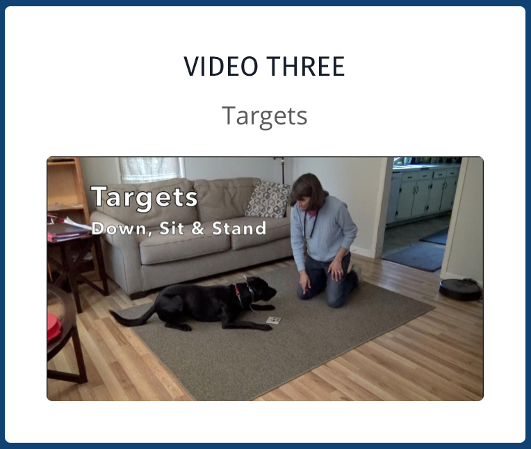 When your dog can sit, down, and stand on unique targets, you have a tool to use as you teach many of the advanced exercises. Using a target that your dog can sit on, you can work on fronts, finishes, and it also provides a clear criterion on your sit stay. Using a target for down will help with your down stay, and the beginning of the Drop on Recall. You can also use it on the Signal and Command Discrimination exercises.